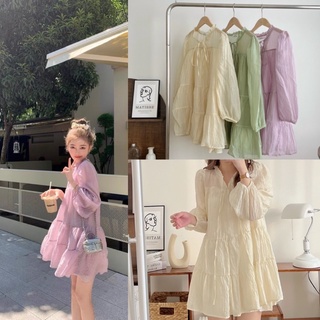 Đầm - váy babydoll dài tay hoa cổ bèo ( dáng váy ngắn)