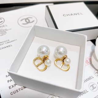 (ảnh thật) Khuyên tai chà.nel đính đá viền sang chảnh, bông tai thương hiệu cao cấp dễ đeo