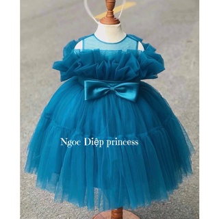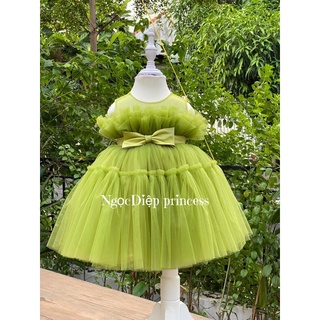 Đầm công chúa bé gái,váy công chúa lưới nơ eo màu xanh bơ cực hot cho bé gáiD020