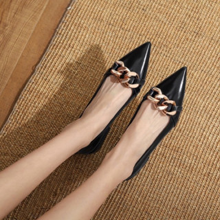 Giày búp bê nữ mũi nhọn phối xích - hài bệt nữ thời trang