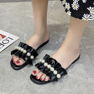 Dép nữ quai ngang nhún bèo tiểu thư sành điệu cực êm, dép kiểu nữ đế xẹp bánh bèo