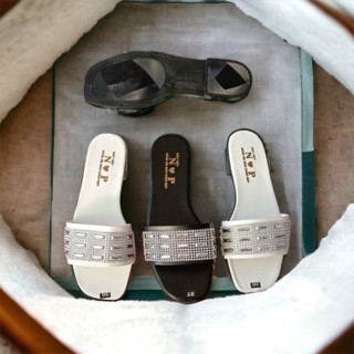 Dép nữ quai ngang đính đá phá cách trẻ trung _ Dép lê kiểu nữ thời trang bánh bèo