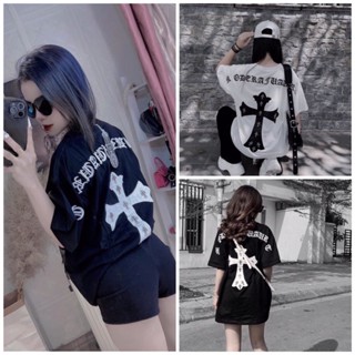Áo Thun Chữ Thập In 2 Mặt Phong Cách Hy Lạp Form Rộng Màu Đen Trắng