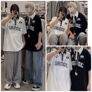Áo Polo Cổ Bẻ Tay Lỡ In Ghữ G.R.O.O.L 2 Màu Đen Trắng Chất Dầy Đẹp Form Rộng Unisex Phong Cách Hàn Quốc ❣️