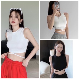 Áo Ba Lỗ Croptop Basic Chất Cotton Tăm Mềm Mịn Dây Buộc Eo Kiểu Mới Ôm Body Siêu Quyến Rũ
