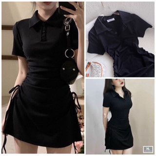 Váy Body Polo Rút Eo Hai Bên Chuẩn Sịn Xò Siêu XinhĐầm Cổ Trụ Đen Rút Hông Ôm Body