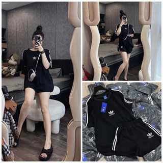 Set Thể Thao Unisex Thêu Hoa Ngực Phối Sọc Tay Năng ĐộngBộ Đùi Nam Nữ Logo Ngực Mát Mẻ Hot Hit
