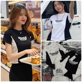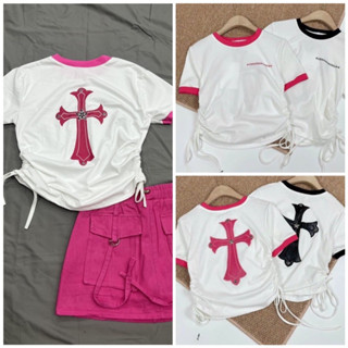 Áo Thun Dáng Vừa Hình Thánh Giá Rút Eo Cực Xinh❤ Áo Baby Tee Phối Cổ Tay Rút Hông Sành Điệu
