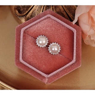 Bông tai bạc 925 hạt 8ly màu trắng ánh hồng - NT40 - Ngọc Trai Trường Thịnh