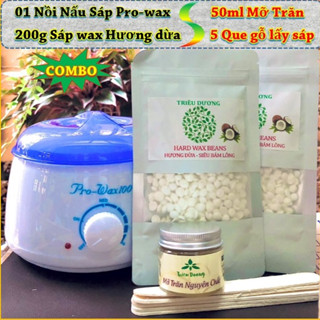 Nồi nấu sáp nóng Prowax 100 + 200gr sáp thơm hương dừa + 50ml mỡ trăn (tặng kèm 5 que lấy sáp)