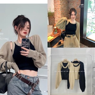 [HÀNG SẴN]SET ÁO LEN SÁT NÁCH CROPTOP MIX CADIGAN TAY BỒNG”MIZZI” SIÊU XINH