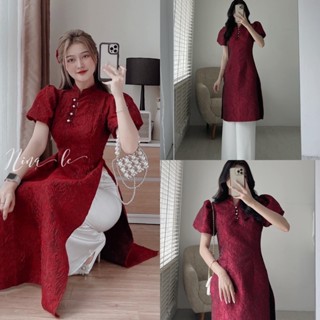 [NEW]SET ÁO DÀI GẤM VÂN HOA TAY BỔNG CỔ TÀU TIỂU THƯ