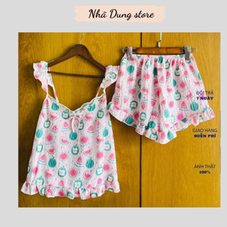 Bộ đồ nữ 2 dây cánh tiên chất liệu đũi xốp thoáng mát họa tiết dưa hấu dễ thương Nhã Dung Store freesize dưới 55kg