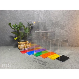 Menu mica đủ kích thước A4,A5,A6, A7,B6 Kệ menu đế lùa trong suốt, bảng mica đẹp