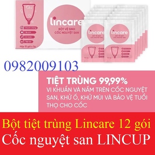 Hộp 12 gói Bột tiệt trùng Cốc nguyệt san Lincare vệ sinh làm trắng sáng tiện lợi, an toàn, nhanh chóng, gọn nhẹ