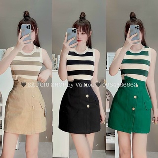 Áo ba lỗ len kẻ ngang dáng croptop, Áo kiểu form ngắn sọc ngang AL0603 - NhiNhi Shop