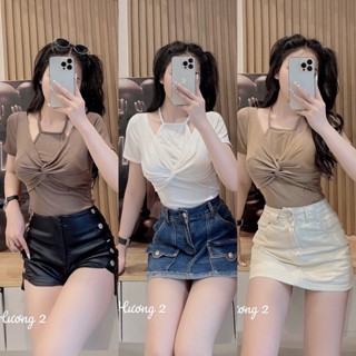Áo thun kiểu cổ yếm xoắn ngực sexxy, Áo phông dáng ôm co giãn AT6420 - NhiNhi Shop