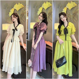 Set áo bèo vải đũi lụa (có mút) kèm chân váy voan dập ly (có lót) sang chảnh
