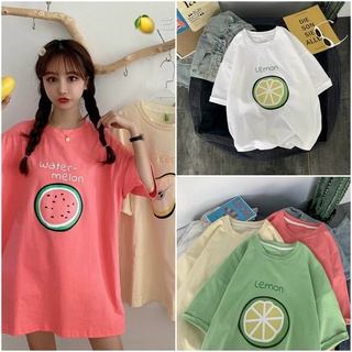 Áo thun tay lỡ form rộng unisex nam nữ in hình hoa quả mùa hè t33