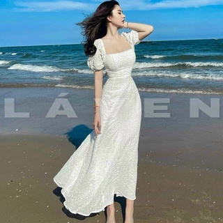 Đầm maxi tay phồng xếp tầng dáng lửng vintage chất xốp thái cao cấp