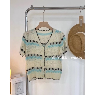 áo khoác len cardigan mùa đông cổ tim cài khuy phối viền kiểu hoạ tiết sang chảnh