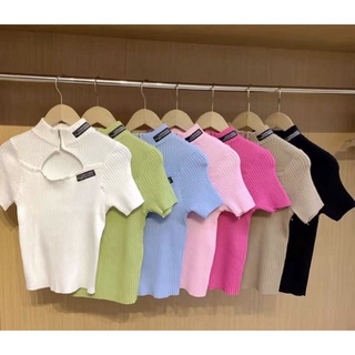 áo len dệt kim mix khoá cổ & mác ngực sexy (1357#)