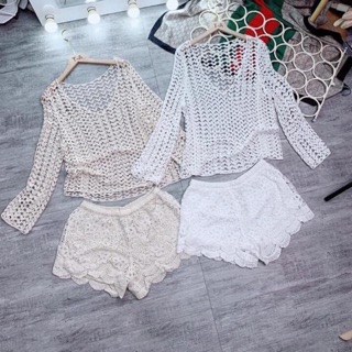 Set biển - set ren áo dài tay + quần ren gấu cánh hoa (có bán tách rời)