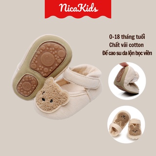 Giày tập đi hình gấu, hình thỏ cho bé 0-18 tháng tuổi 100% cotton hữu cơ tự nhiên chống trơn trượt mã002
