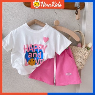Bộ Áo Thun In Chữ + Quần Short Thời Trang Mùa Hè Hàn Quốc Dành Cho Bé Gái 1-7 Tuổi