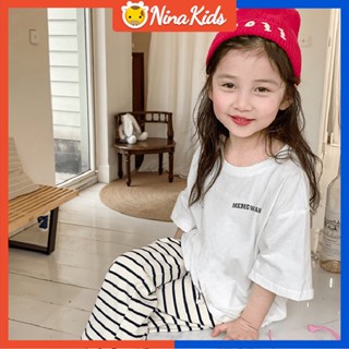 Bộ Áo Thun + Quần Kẻ Sọc Thời Trang Mùa Hè Hàn Quốc Cho Bé Gái 2-9 Tuổi