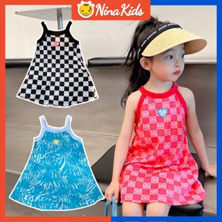 Đầm Sát Nách Họa Tiết Kẻ Sọc Phong Cách Hàn Quốc Xinh Xắn Cho Bé Gái 0-7 Tuổi
