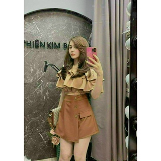 (FreeShip 2022) Sét thiết kế nữ,sét áo tầng trễ vai chất lụa mềm mát mix chân váy chéo tà cực xinh hàng chuẩn shop
