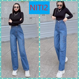 [ ÁI NỮ JEANS ] QUẦN JEANS ỐNG RỘNG NỮ LƯNG CAO LAI CUỐN TÚI HÔNG XANH ĐẬM MỀM MỊN CÁ TÍNH NITI2 BẤT CHẤT MỌI CUỘC CHƠI