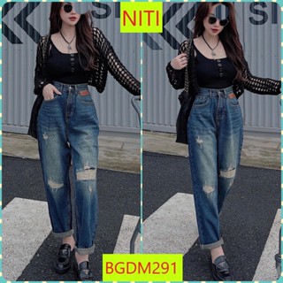 [BGDM291] QUẦN BAGGY JEANS NỮ LƯNG CAO RÁCH 2 MẢNG GỐI PHẢI 1 MẢNG GỐI TRÁI PHỐI MẠC DA MÀU XANH ĐẬM BỤI BẶM