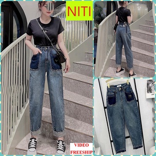 [ FREESHIP ] QUẦN JEAN ỐNG RỘNG NỮ TÚI NẮP 1 BÊN ĐỦ MÀU XANH NHẠT, XANH ĐẬM CAO CẤP NITIQC FORM DÀI RỘNG HOT