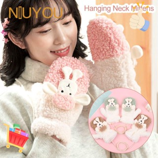 Găng Tay Mùa Đông Dày Dặn Họa Tiết Cừu Hoạt Hình Có Dây Đeo Cổ Thời Trang
