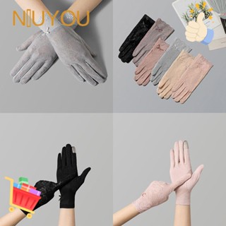 Găng Tay Chống Nắng Tia UV Vải Lụa Lạnh Mỏng Phối Ren Chạm Cảm Ứng Cho Nữ