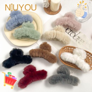 Kẹp Tóc Càng Cua Bằng Lông Giả Màu Sắc Trơn Thời Trang Thu Đông