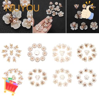 Set 5 Nút Hình Bông Hoa Làm Đồ Thủ Công DIY|Kẹp Tóc Ngọc Trai Giả