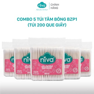 Combo 5 Tăm Bông NIVA Dành Cho Trẻ Em Túi Zipper 200 Que Giấy Bzp1