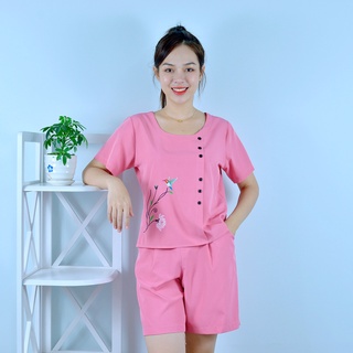 Bộ đồ bộ màu HỒNG PHẤN CỔ TIM tay ngắn quần ngắn vải lụa pháp - Thoải Mái Nhẹ Nhàng