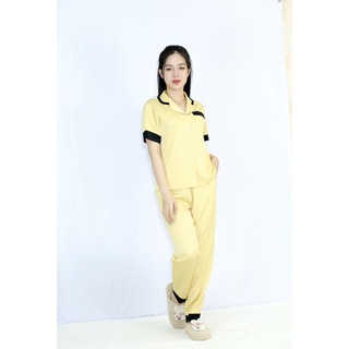 Bộ đồ bộ VÀNG PHA ĐEN tay ngắn quần lửng vải lụa cao cấp - Thoải Mái- Nhẹ Nhàng -Co giãn nhẹ