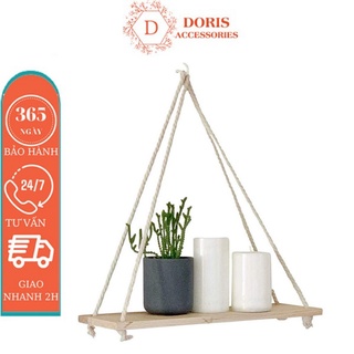 Kệ treo tường dây thừng gỗ thông 30x10 cm l Kệ treo dây thừng decor nhà cửa gắn tường gỗ thông cao cấp DORIS ACCESSORIES