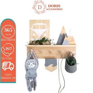 Móc Gỗ Gắn Tường Gỗ Thông - Chịu Lực Cao - Kệ Treo Tường Kèm Móc Trang Trí - Bảo Hành 12 Tháng DORIS ACCESSORIES
