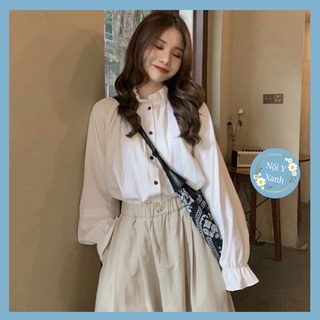 Áo sơmi nữ xuông form rộng phối cổ bèo bản to tươi trẻ A259 Nội Y Xanh hàng đẹp trendy - nội y xanh
