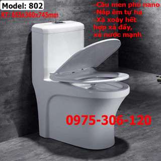 Bồn Cầu Liền khối 1 Khối 802 XẢ XOÁY 2 LỚP KẾT HỢP XẢ ĐẨY NƯỚC MẠNH MEN NANO CAO CẤP