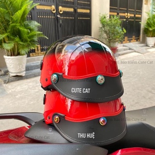 Mũ Bảo Hiểm Nửa Đầu Kèm Kính Phi Công Có Nhiều Màu Lựa Chọn Khóa Đỏ Pull Cao Cấp, Nón Bảo Hiểm 1/2 Đầu CUTE CAT