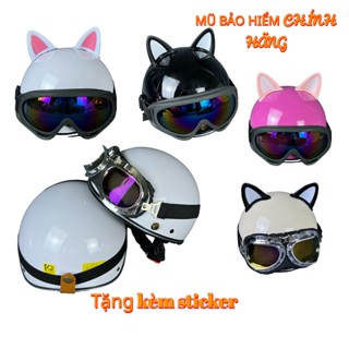 Mũ bảo hiểm trơn nửa đầu gắn kính cao cấp tặng kèm tai mèo y hình lưỡi trai nón và sticker đáng yêu