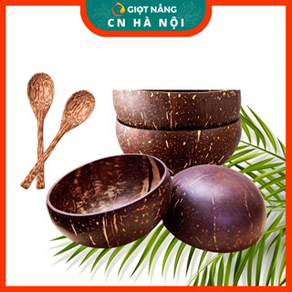 Bát chén gáo dừa và muỗng loại 1 size lớn dùng để ăn ngũ cốc granola từ Nông sản Giọt nắng Hà Nội