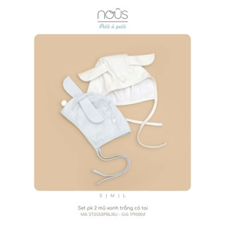 Set phụ kiện 2 mũ màu trắng hồng và xanh trắng có tai cho bé Nous - chất liệu petit ( từ 0-24 tháng tuổi)